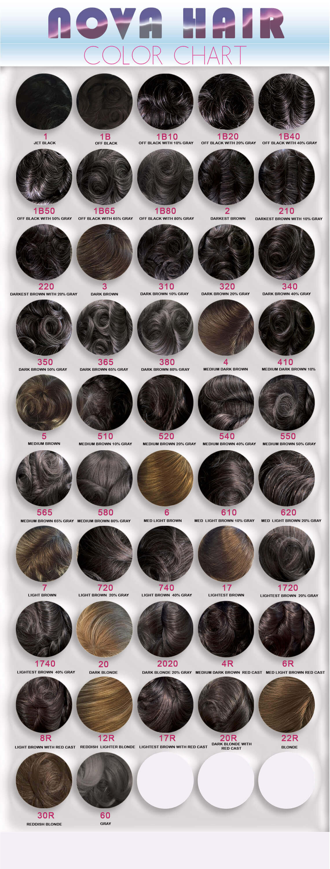 Nova Hair Color Chart